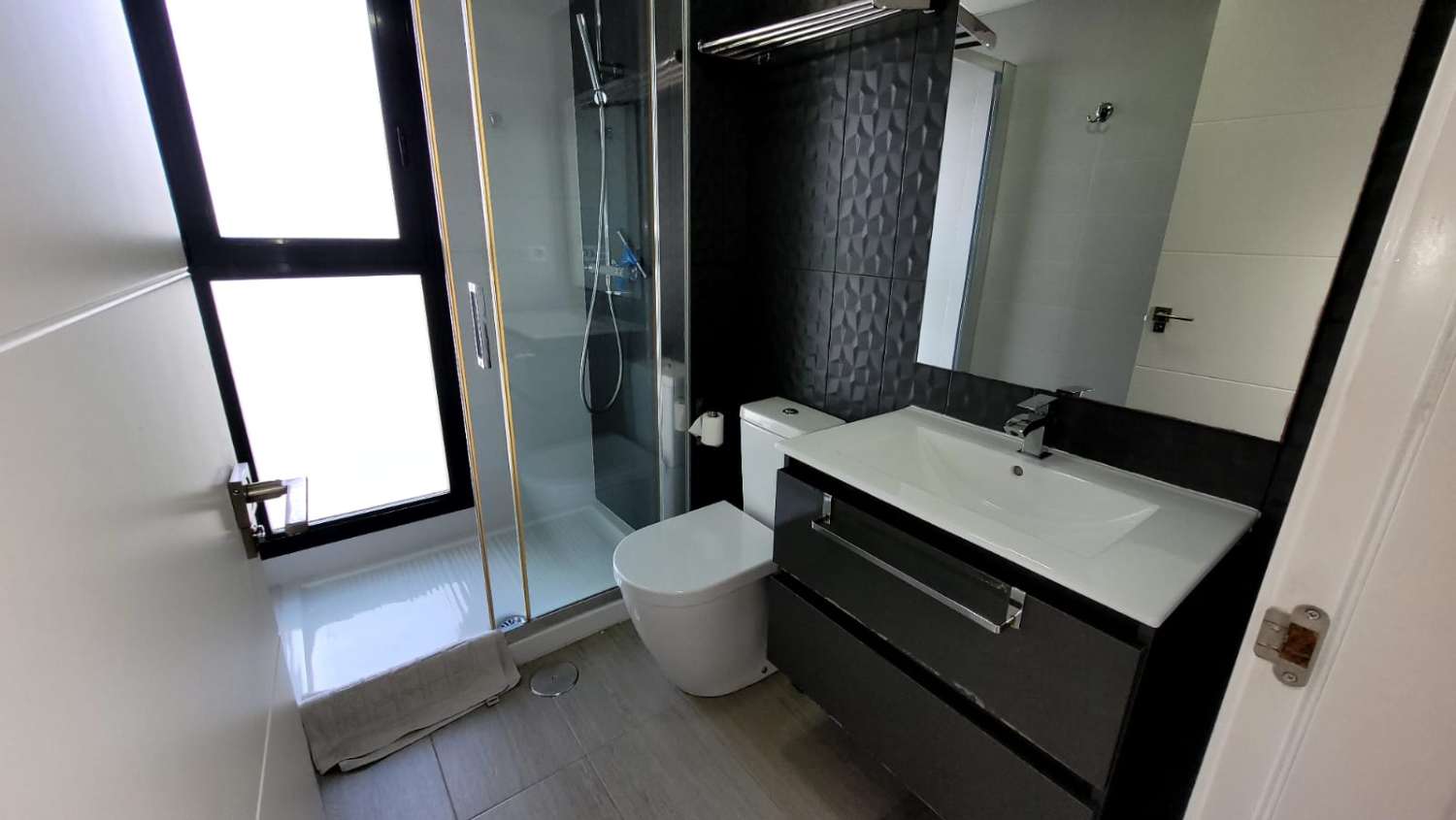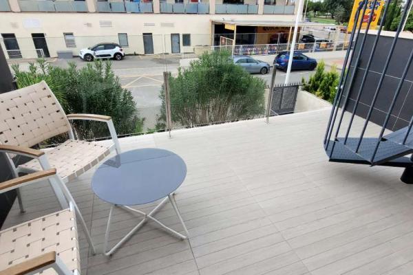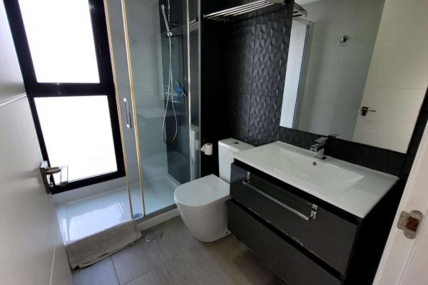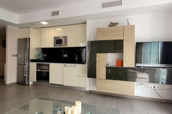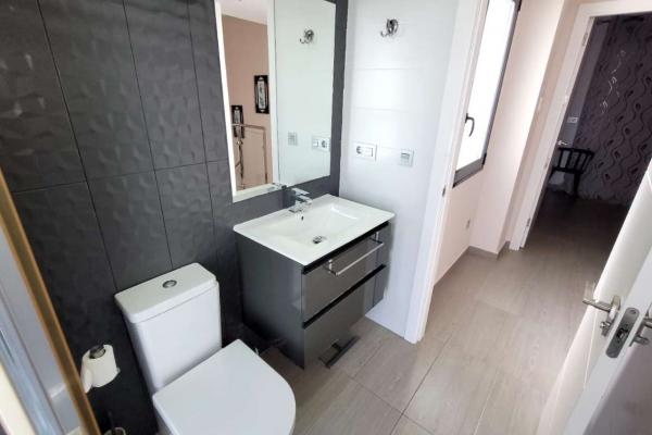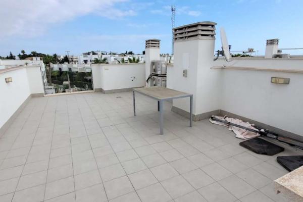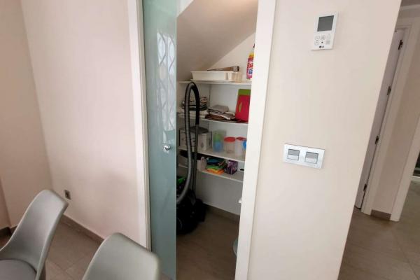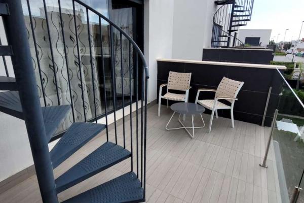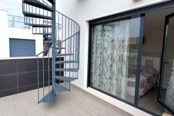 Im ersten Stock befinden sich ein helles Wohnzimmer, eine offene Küche, ein Schlafzimmer und ein Badezimmer. Im zweiten Stock befinden sich zwei geräumige Schlafzimmer und ein Badezimmer mit direktem Zugang zur Terrasse und zum Solarium. Alle Zimmer verfügen über eine zentrale Klimaanlage.