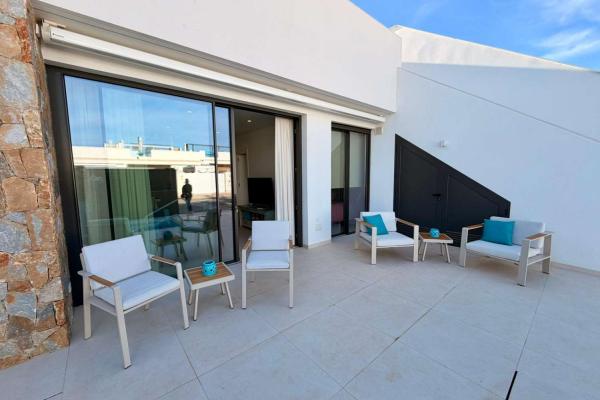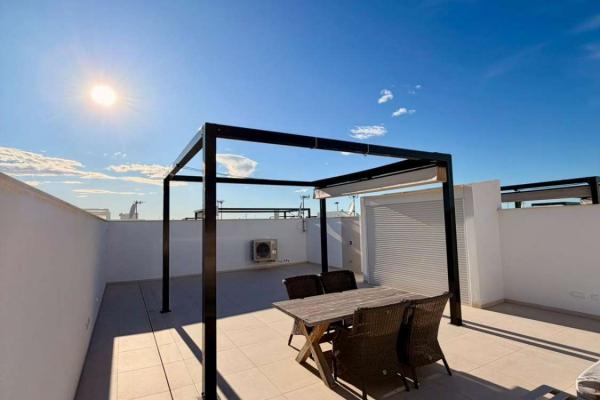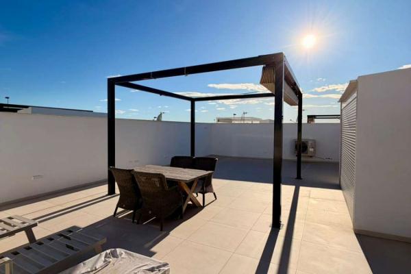 Upstairs, there is a large sun terrace from which you can see the Mar Menor and enjoy sunrises and sunsets. The sun terrace also has a large pergola and a modern summer kitchen.