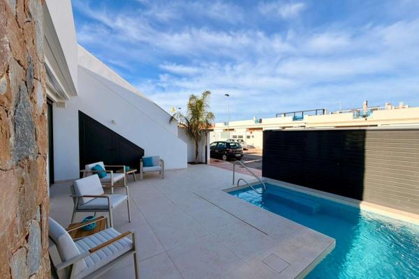 This beautiful villa has a large, beautifully landscaped garden, a lovely pool with sun loungers and a storage room for your garden tools. Inside, you will find a bright living room connected to the open-plan, modern kitchen, three bedrooms and two state-of-the-art bathrooms.