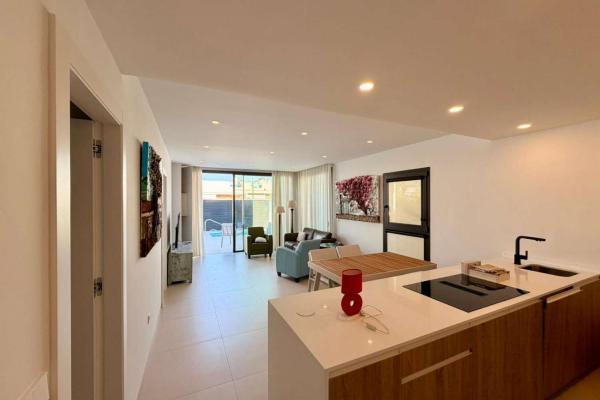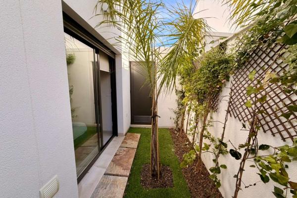 This stunning villa boasts a spacious, beautiful garden, an inviting pool with sun loungers and a storage room for your garden tools. Inside, you will find a bright living room with an adjoining modern open-plan kitchen, three bedrooms with fitted wardrobes and two state-of-the-art bathrooms. The entire property is air-conditioned. It is sold fully furnished and has electric blinds and shutters on all windows.