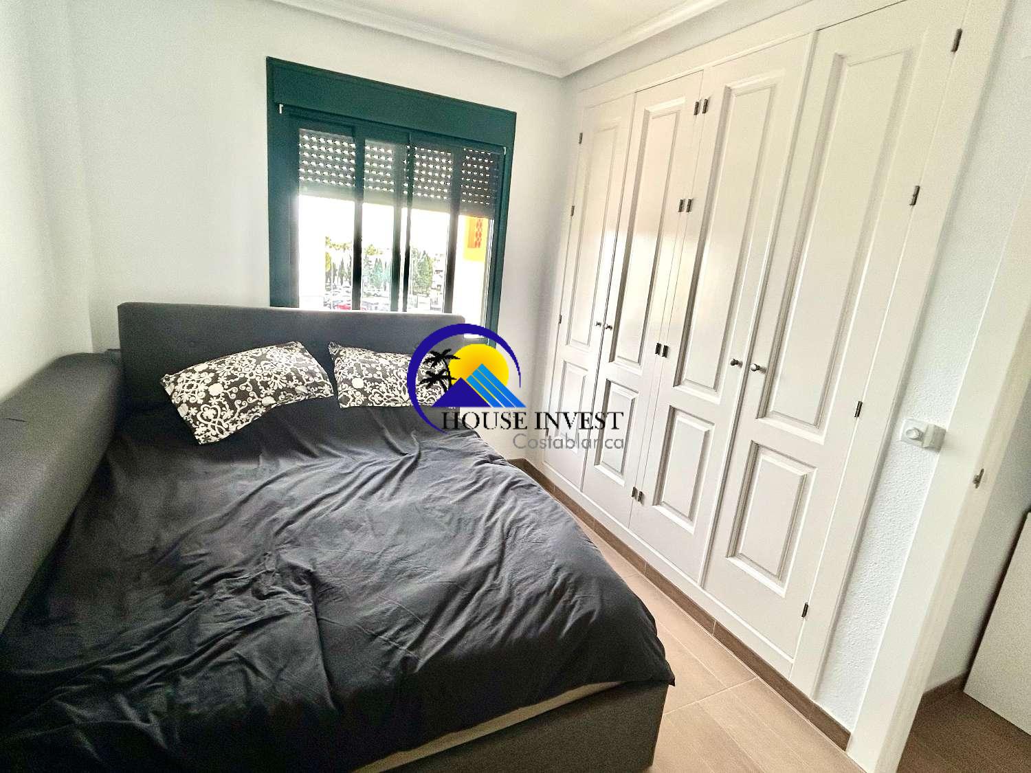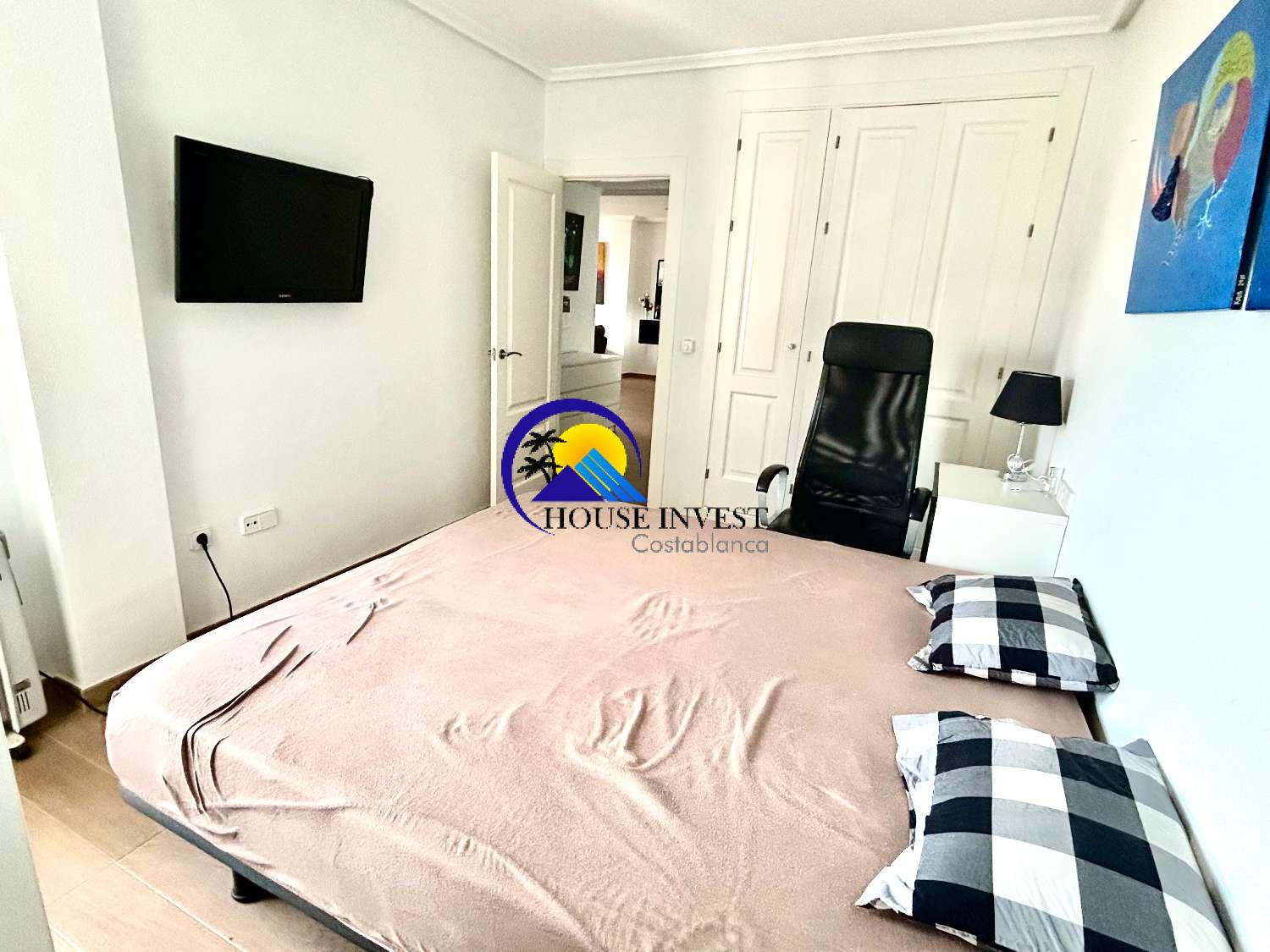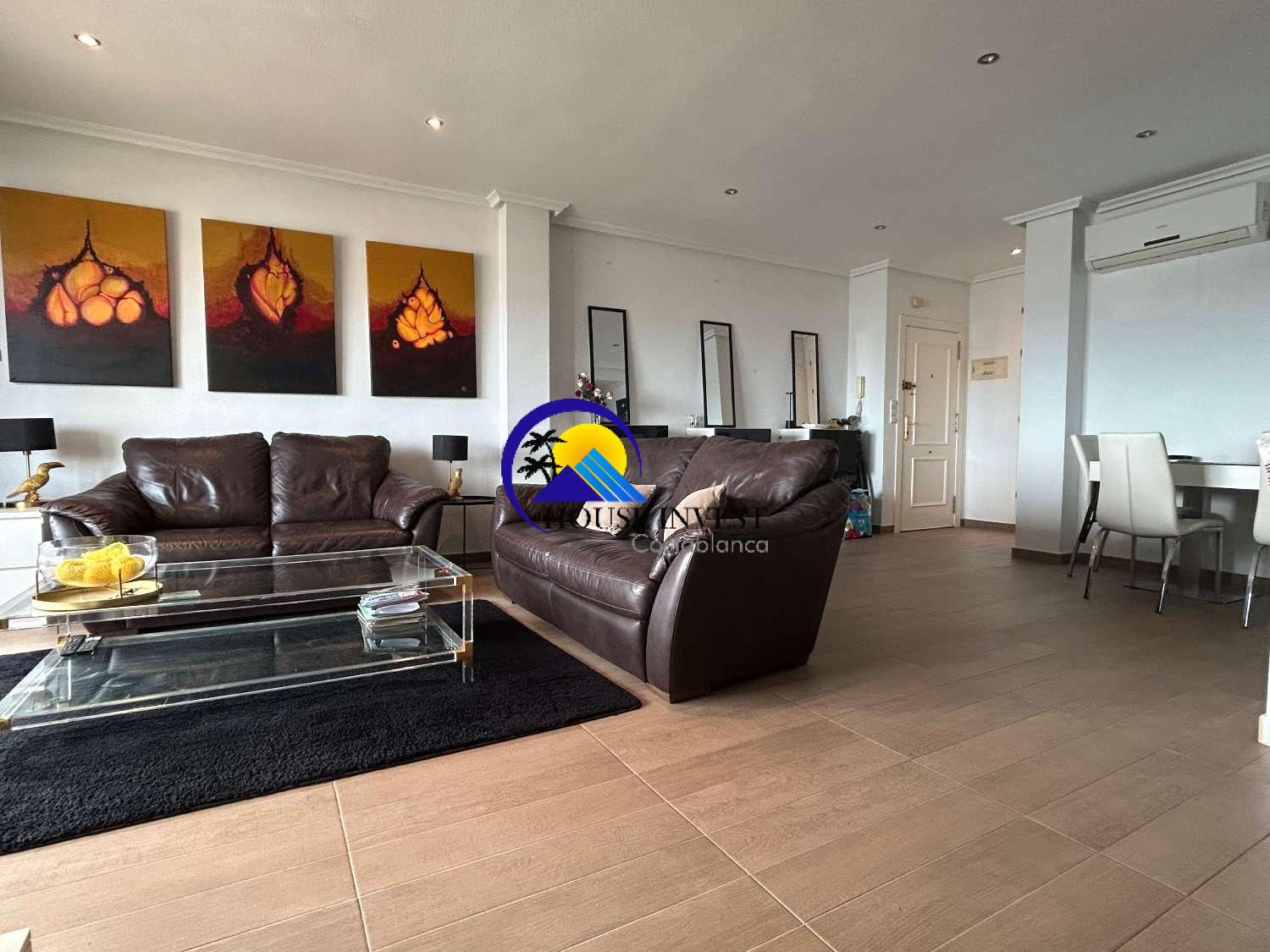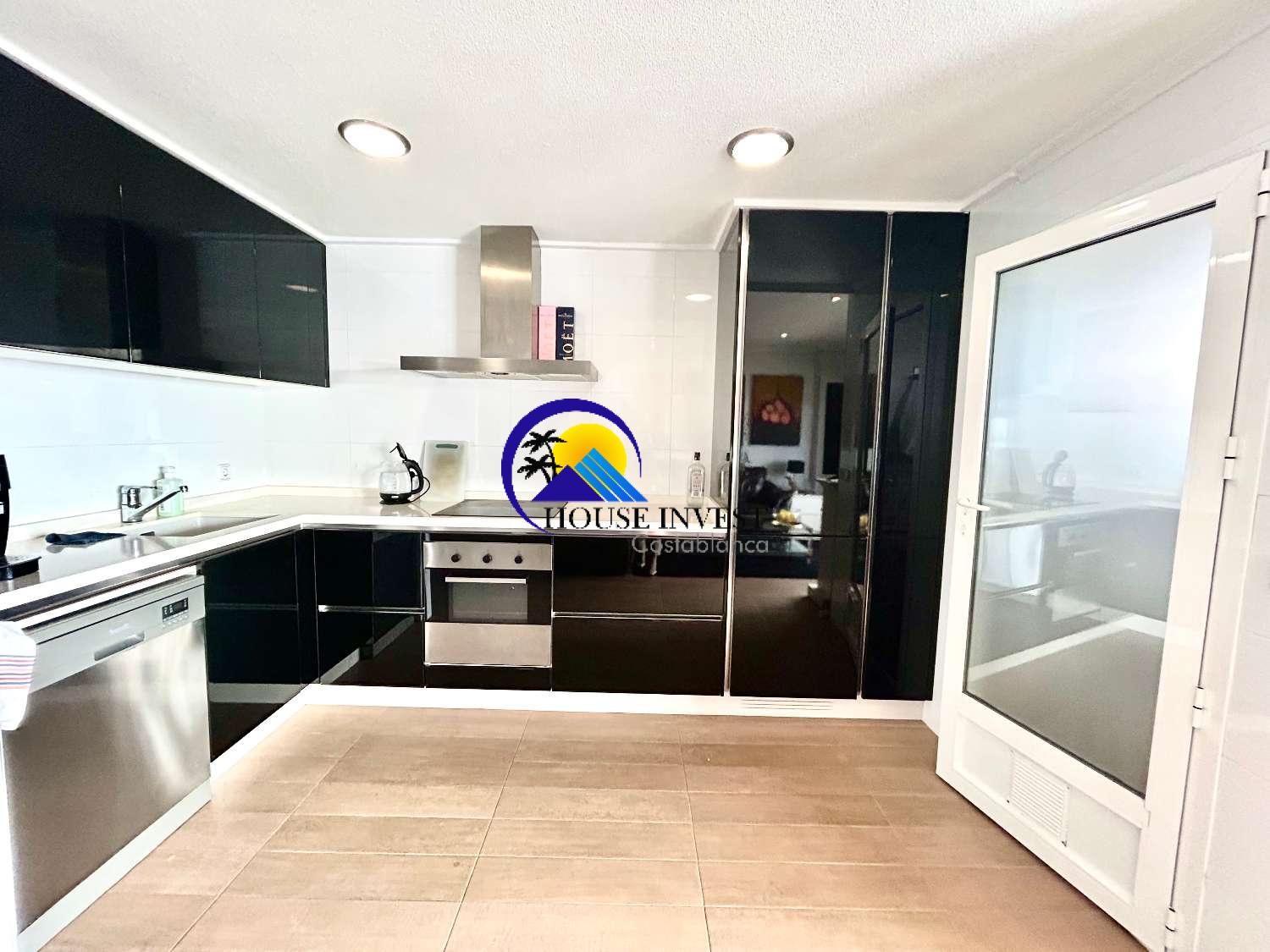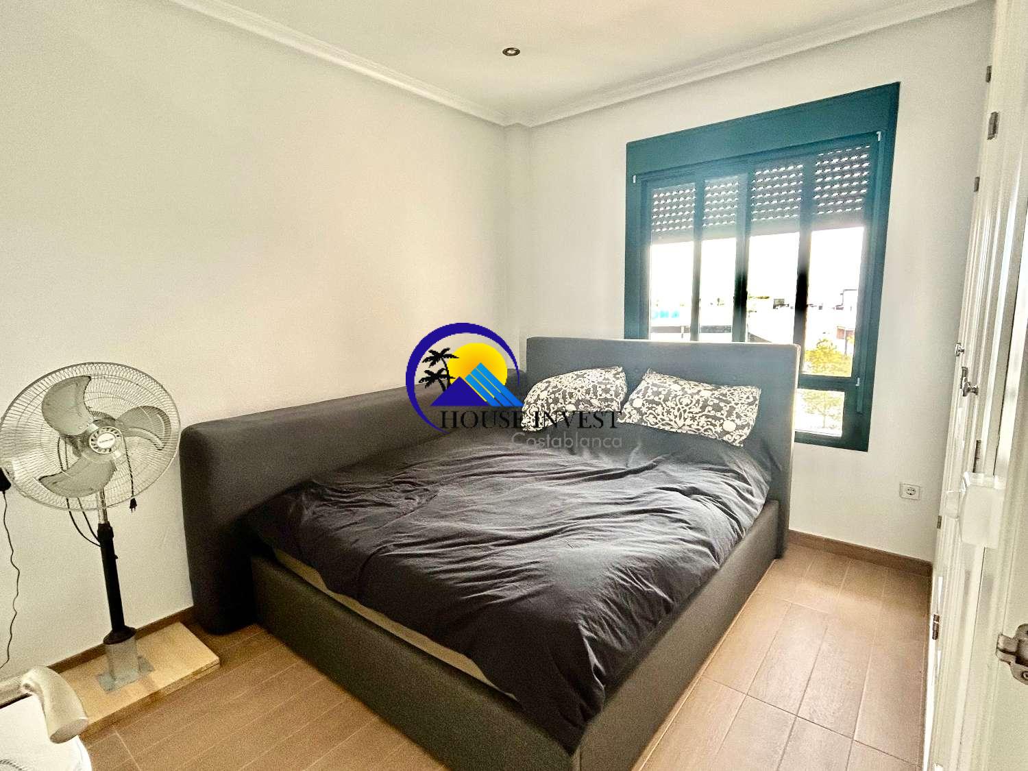 El apartamento cuenta con una zona de estar luminosa y diáfana que da a una terraza privada, lo que ofrece el espacio perfecto para disfrutar de una comida al aire libre o simplemente relajarse bajo el sol. La distribución, muy bien diseñada, incluye dos amplios dormitorios dobles y dos baños, lo que lo hace ideal tanto para vivir a tiempo completo como para uso vacacional.
