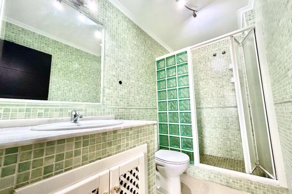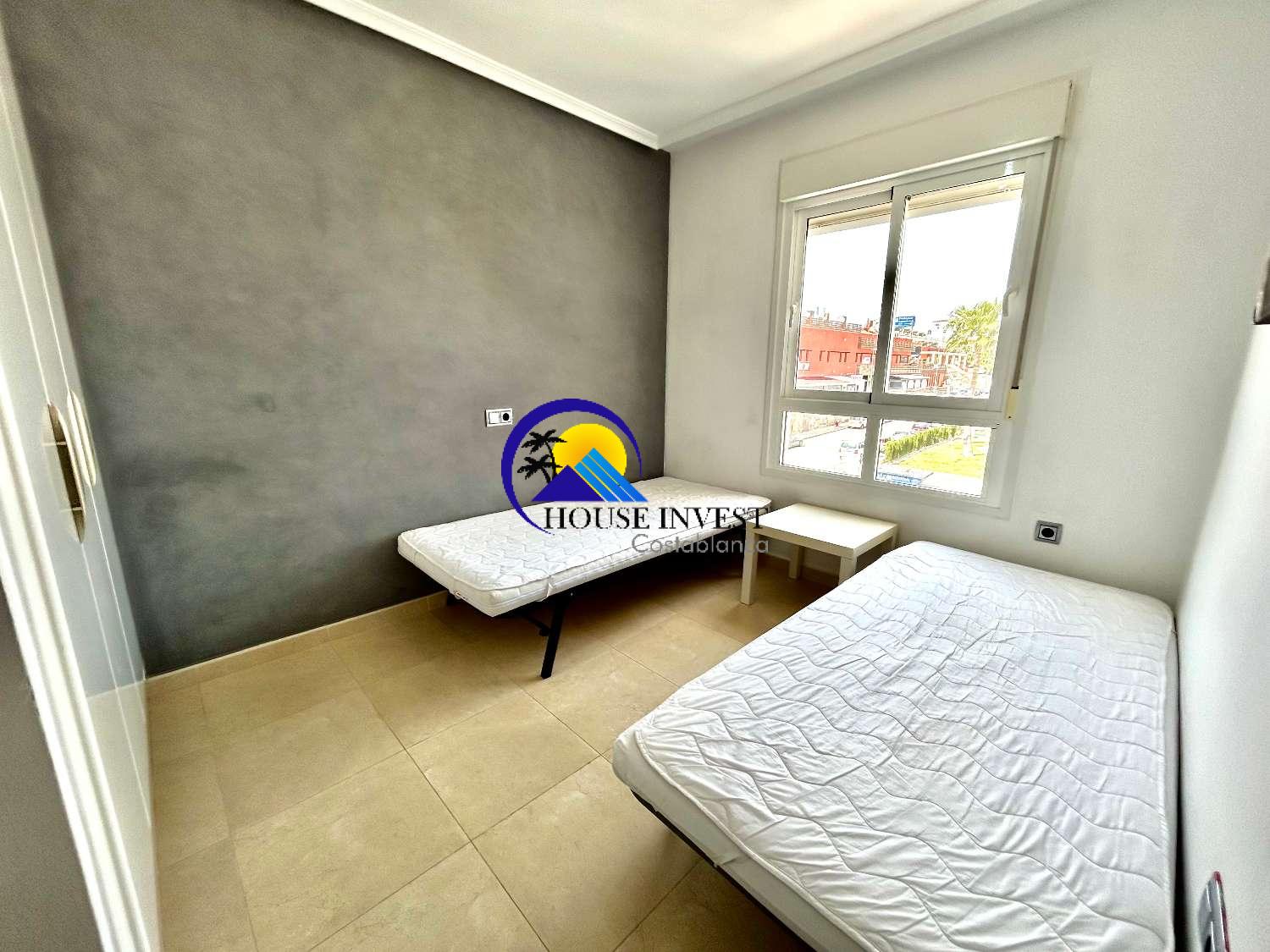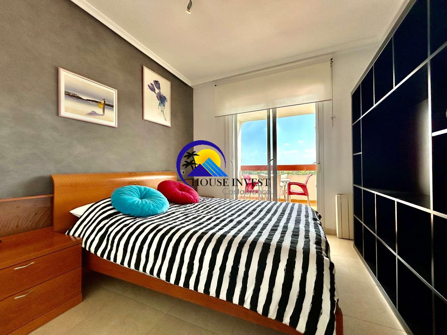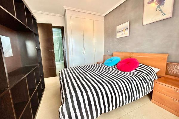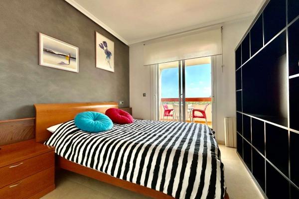 El dormitorio principal es de generosas dimensiones y cuenta con su propio cuarto de baño en suite, además de acceso directo al balcón, lo que lo convierte en un refugio para relajarse y disfrutar del clima mediterráneo.
