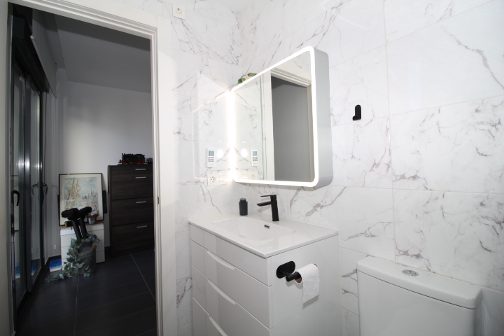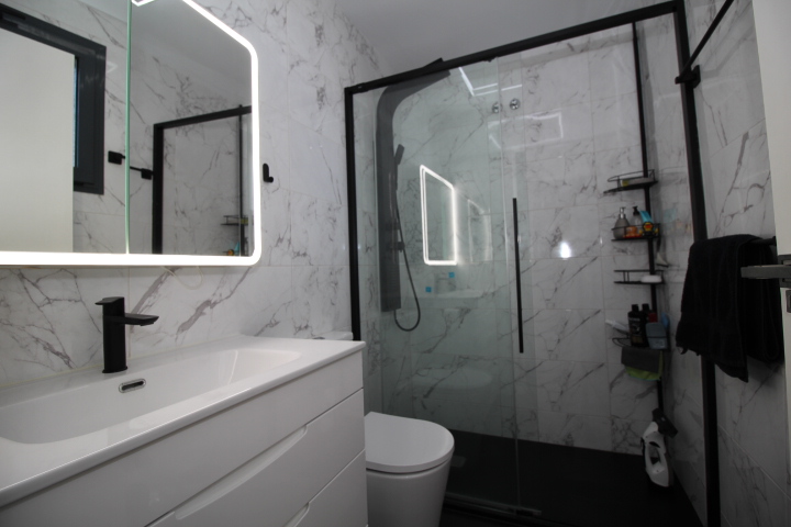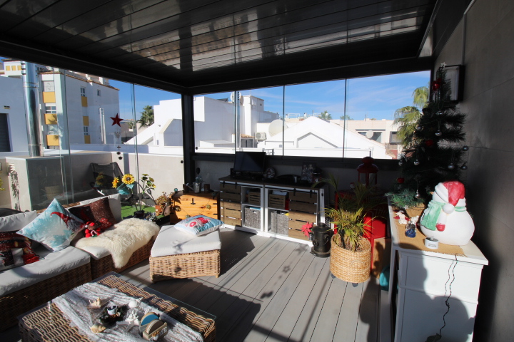 Lo más destacado es la amplia terraza en la azotea, totalmente acondicionada y diseñada como una casa de playa con su propia entrada privada. Está equipada con una pérgola bioclimática y cortinas de cristal de alta calidad. Tanto las cortinas de cristal de la terraza de la azotea como las del salón han sido selladas profesionalmente, lo que garantiza que se mantengan cristalinas hasta 15 años sin necesidad de limpiarlas, perfectas para tomar el sol, cenar al aire libre o disfrutar de agradables veladas bajo el cielo abierto.