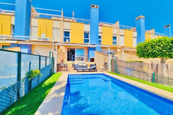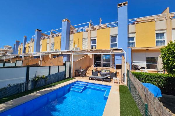 Oportunidad única de adquirir esta espectacular propiedad en Calas de Campoamor con vistas al mar, a solo 100 metros de la playa. Esta villa de 3 dormitorios y 3 baños cuenta con una piscina climatizada de agua salada instalada hace menos de 2 años, además de un solárium privado, garaje subterráneo y trastero. En la planta baja hay un fantástico salón-comedor con puertas acristaladas que dan a la terraza de baldosas y a la piscina, que ha sido acabada con césped artificial. En la primera planta se encuentra el dormitorio principal, que disfruta de vistas al mar y baño en suite, junto con dos dormitorios dobles para invitados y el baño familiar, todos con vistas al mar o a la piscina comunitaria. En la planta superior se encuentra el fabuloso solárium con más impresionantes vistas al Mediterráneo y al Mar Menor. La villa tiene un garaje subterráneo y un trastero a los que se accede por una escalera interior, desde donde se puede acceder cómodamente al coche y salir del complejo a través de puertas eléctricas. La casa forma parte de un complejo bien cuidado, donde los propietarios también pueden hacer uso de la enorme piscina comunitaria y el bonito jardín. La propiedad se vende tal y como se ve, completamente amueblada y con muchos extras, como lavadero independiente, nuevos aparatos de aire acondicionado en los dormitorios, electrodomésticos de cocina nuevos, sistema de piscina climatizada con salina sin productos químicos, puertas de garaje automáticas, sistema de intercomunicación, chimenea en el salón y barbacoa en la terraza principal.