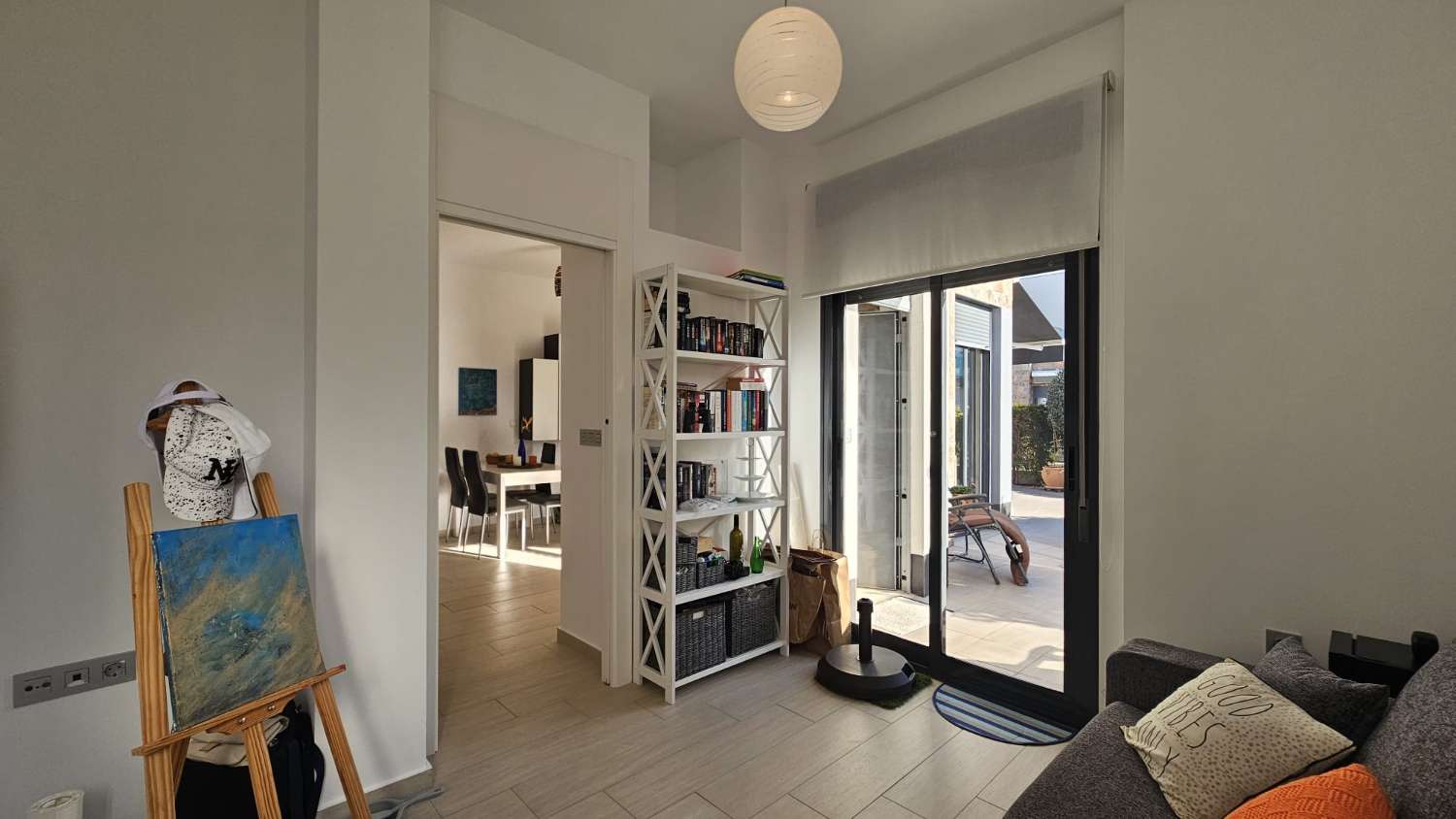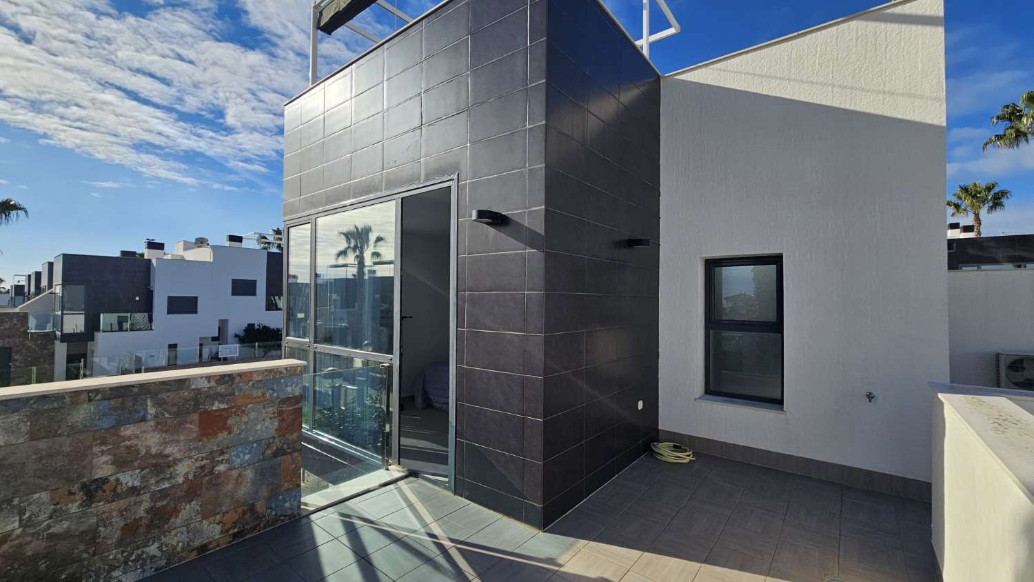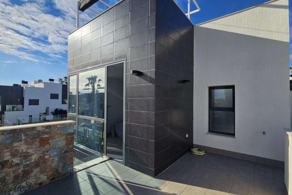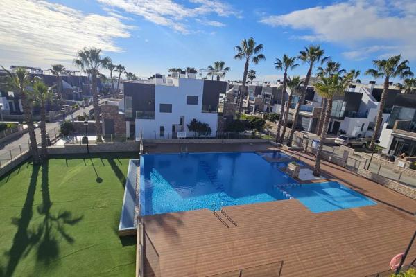 Esta moderna casa adosada, con un bonito diseño, ofrece una vida elegante con vistas al mar desde un lugar tranquilo y elevado. Con vistas a una de las dos piscinas comunitarias y a solo unos pasos de ellas, la casa tiene tres elegantes dormitorios y dos baños, cuidadosamente distribuidos para ofrecer comodidad y funcionalidad. Un solárium luminoso y versátil mejora el espacio habitable, proporcionando un área ideal para relajarse o entretenerse mientras se disfruta de las vistas de los alrededores. Los residentes se benefician del acceso a dos impecables piscinas comunitarias, además de la comodidad de una plaza de aparcamiento subterráneo privada y una entrada adicional directamente frente a la vivienda. Otras características adicionales son el aire acondicionado en toda la vivienda, la calefacción por suelo radiante y los espacios exteriores cuidadosamente diseñados, que combinan comodidad, estilo y practicidad. Con una ubicación perfecta, la propiedad se encuentra cerca de supermercados, bares y restaurantes, lo que garantiza la comodidad diaria y un estilo de vida dinámico. Con líneas arquitectónicas limpias, acabados de calidad y una distribución bien equilibrada, esta propiedad es ideal como residencia principal o como elegante refugio, ya que ofrece lujo moderno, espacio y vistas sin exposición a la costa.
