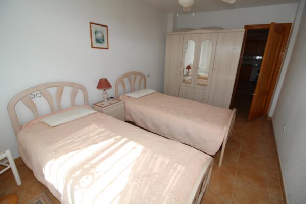 Apartamento en planta baja: 2 dormitorios, 1 baño, cocina americana con salón comedor y terraza.